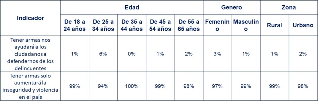 • 98% considera que tener armas solo aumentara la inseguridad y violencia en el país